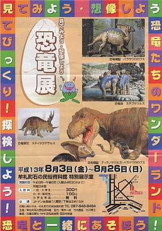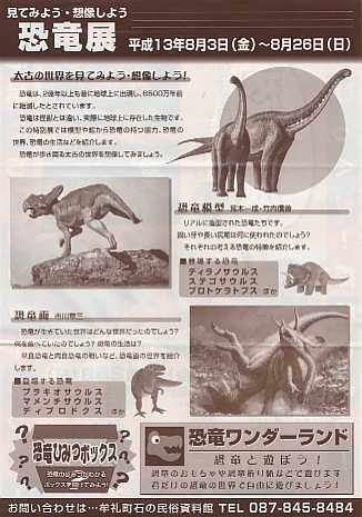 香川県 牟礼町石の民族資料館 特別展 「見てみよう・想像しよう 恐竜展」 申し訳ありません、チラシのコピーのみです。私の他に、竹内SHINZENさんの模型、市川章三氏のイラストも展示されていました。