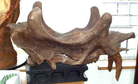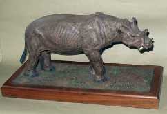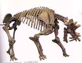 ウインタテリウムの全身骨格(福井県立恐竜博物館のカタログから)と復元模型(L・ジョーナス作)