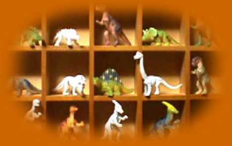 恐竜: 大型獣脚類(33) / 小型獣脚類(24) / 竜脚類(18) / 角竜類(20) / 剣竜類(9) / 鳥脚類(20) / 堅頭類(6) / ヨロイ竜類(11) / セグノサウルス類(2) その他絶滅動物: 翼竜類(12) / 絶滅海棲爬虫類(15) / 絶滅爬虫類(8) / 絶滅両生類(3) / 絶滅魚類、他(6) / バージェス生物(3) / 絶滅哺乳類(11) / 絶滅鳥類(6) / ファンタジー(4)
